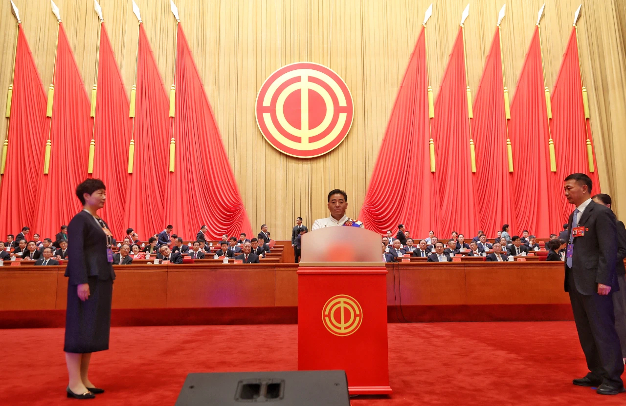中国工会第十八次全国代表大会10月9日上午在人民大会堂开幕。习近平、赵乐际、王沪宁、丁薛祥、李希等党和国家领导人到会祝贺,蔡奇代表党中央致词。