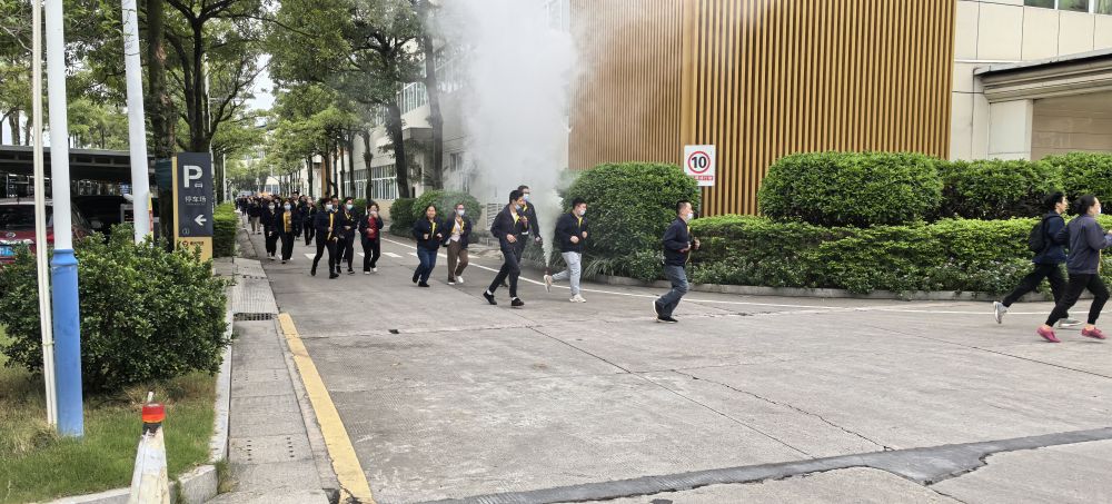 随着消防警报声拉响,消防演练正式开始。演练人员迅速进入角色,灭火组、疏散组、救护组、警戒组、通信组根据职责分工,按照事先制定的预案开展行动。大家以最快速度沿安全通道有序疏散,并撤离至室外紧急集合点。到达紧急集合点后,演练人员按照部门列队排列,负责人立即清点人数,并向总指挥报告。整个演练过程紧张有序,各环节配合默契,使全体员工熟悉了逃生路线,达到了在紧急情况下迅速地引导人员进行安全疏散的预期效果。